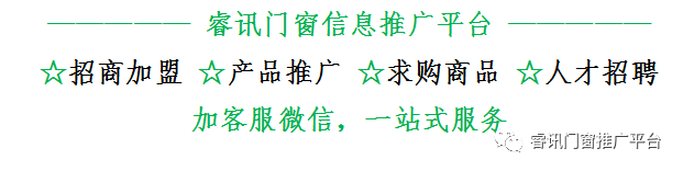 关注睿讯门窗平台,品牌宣传、招商加盟、产品推广、求购商品、人才招聘,轻松帮您搞定