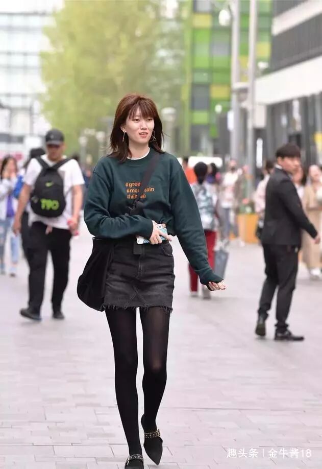 短裙、黑丝、恨天高,三件单品,不要同时穿在身上,所以如果你要穿短裙+黑丝的话,那就放弃高跟鞋这个单品,同样也能搭配出好看的look。