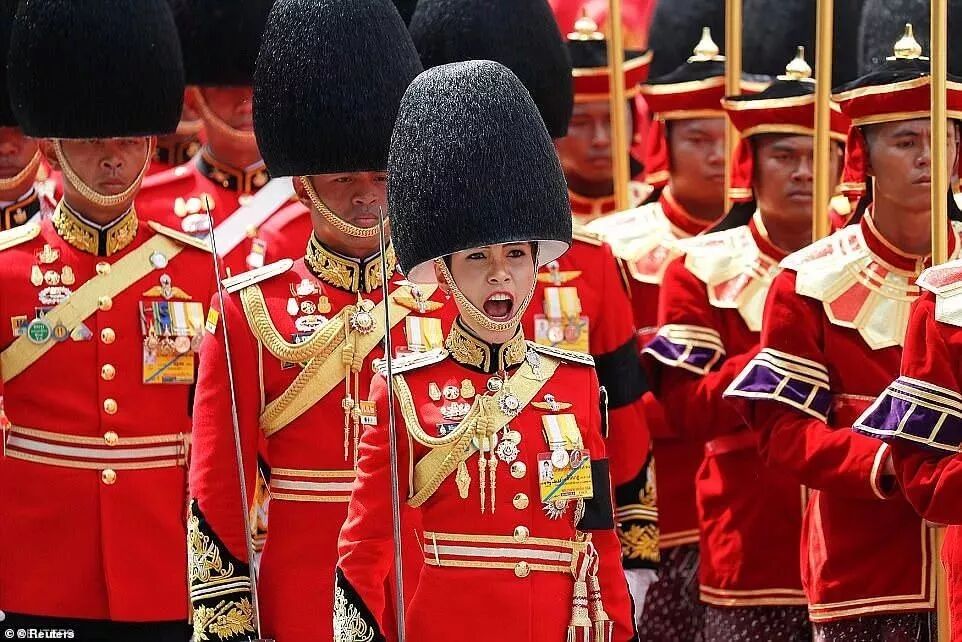 34岁的诗妮娜算是国王的女保镖,她2015年正式进入泰国皇家护卫队工作,官至上校军衔,后来又晋升为御林军副指挥。