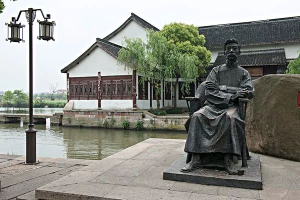 鲁镇挺大,沿着弯弯曲曲的河道,大多是鲁迅笔下提到建筑。镇里还有一组组关于形象夸张的雕塑,几十个故事人物的铜像讲述着一个个鲁迅小说中的故事。
