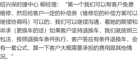 绍兴保时捷中心方面表示,针对陈女士的诉求,他们可以给客户办理有条件退换车手续。