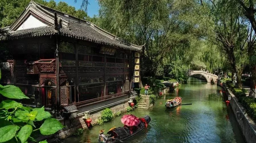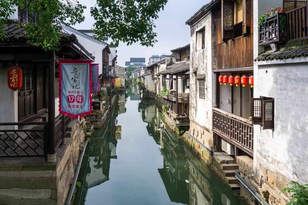 街区内还有一条环山河,因环绕府山而得名。乌篷船在河中舟楫来往,“古城小桥多,人家尽枕河”,形成了绍兴水城的独特景观。