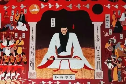 △殿内墙上的越王勾践卧薪尝胆图
