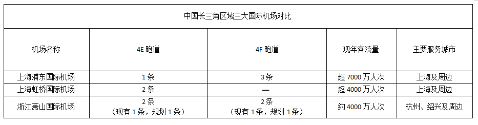长三角地区三大机场中只有浦东和萧山为4F机场: