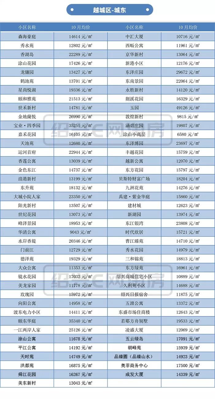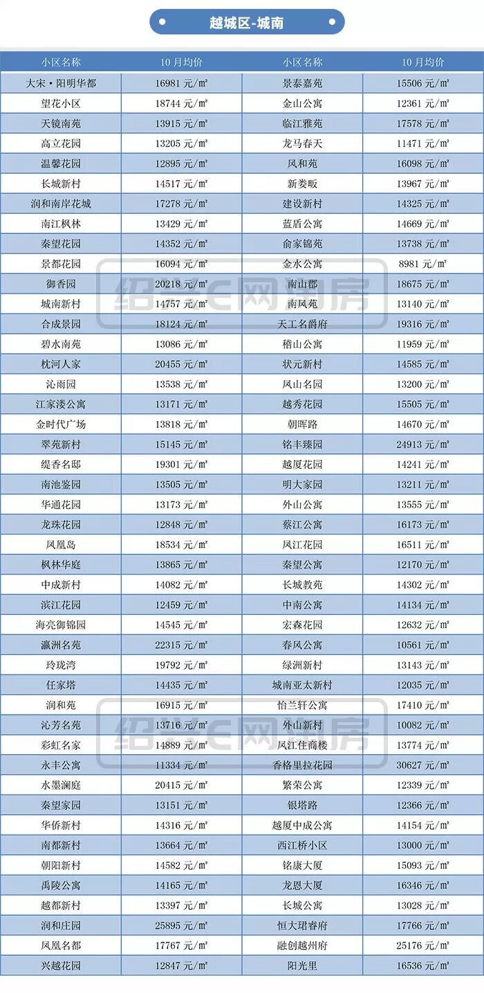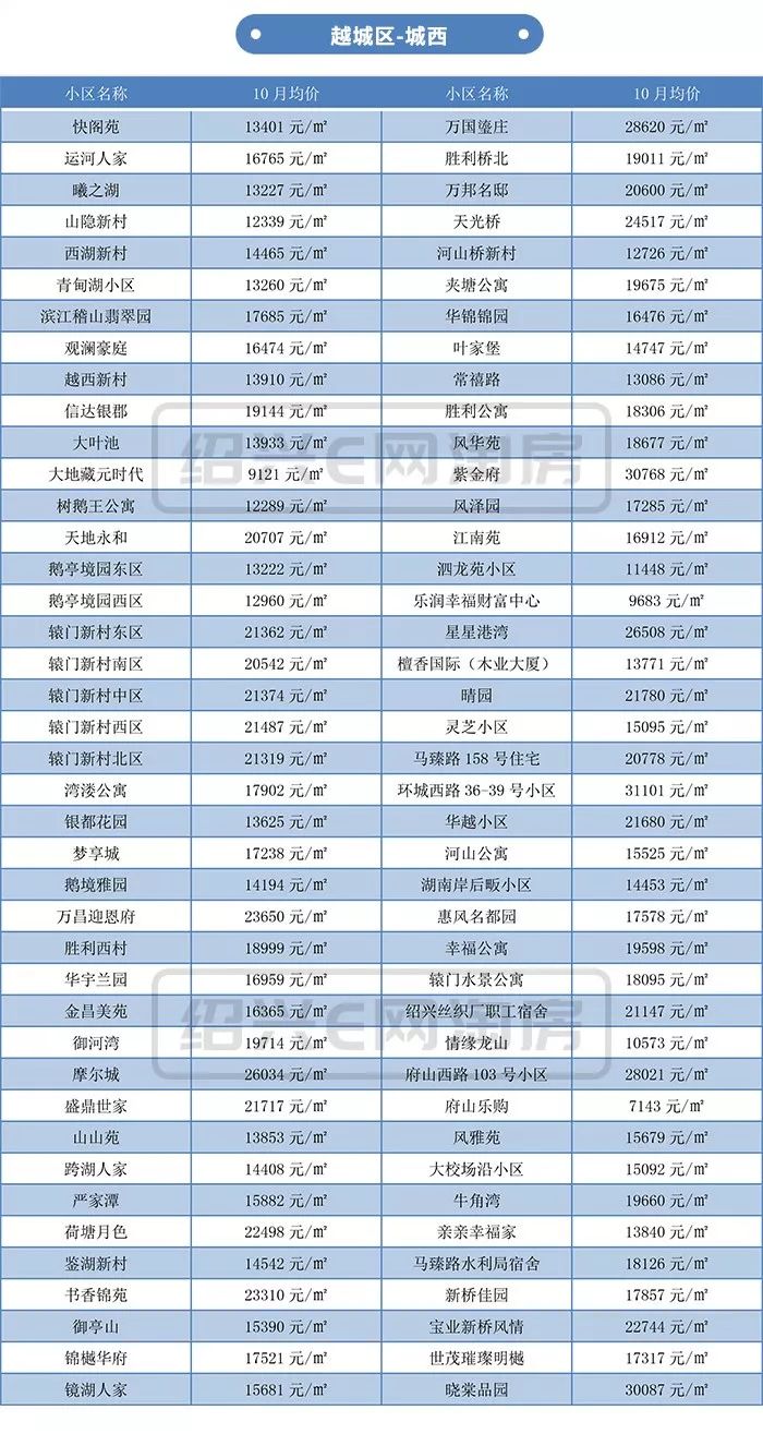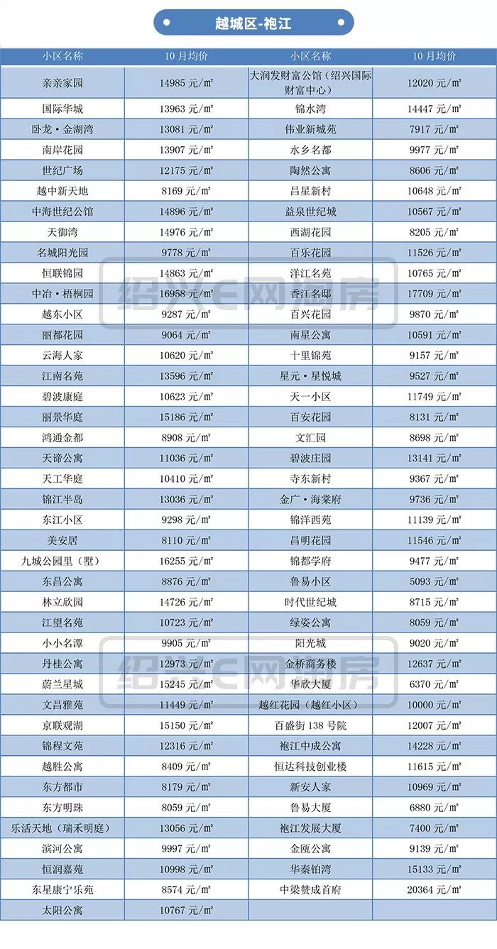 房价 | 绍兴越城、柯桥、上虞各小区10月房价曝光!这里的房子升值最快…