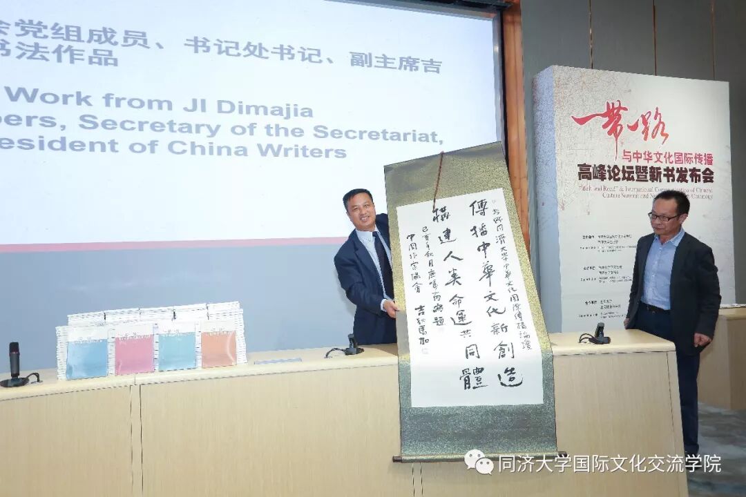 开幕式后,由同济大学国际文化交流学院副院长孙宜学教授担任主编、同济大学出版社出版的“‘一带一路’与中华文化国际传播”丛书最新成果《“一带一路”与文化国际传播经典案例》《“一带一路”与中国当代文学走出去》举行了新书首发仪式。据了解,丛书基于同济大学在“一带一路”、汉语与中华文化国际传播、海外华文教育领域已经取得的成果和广泛的学术资源,围绕“‘一带一路’与中华文化国际传播”的历史、现状与愿景,系统分析“一带一路”倡议实施前后沿线国家的语言文化政策、语言生态、中华文化传播的经验和教训,基于“一带一路”倡议的未来发展规划,探索“一带一路”背景下汉语与中华文化国际传播的困境及应对策略,重新设定汉语与中华文化传播的内涵与目标、途径与方法、问题与对策、机制保障,进而形成中华文化本土化传播的相关理论,推动形成“一带一路”沿线国家中华文化国际传播的“地方模式”,为中华优秀文化国际化传播的政策制定提供理论依据。此前已出版《“一带一路”与中华文化国际传播》《“一带一路”与海外华文教育》。