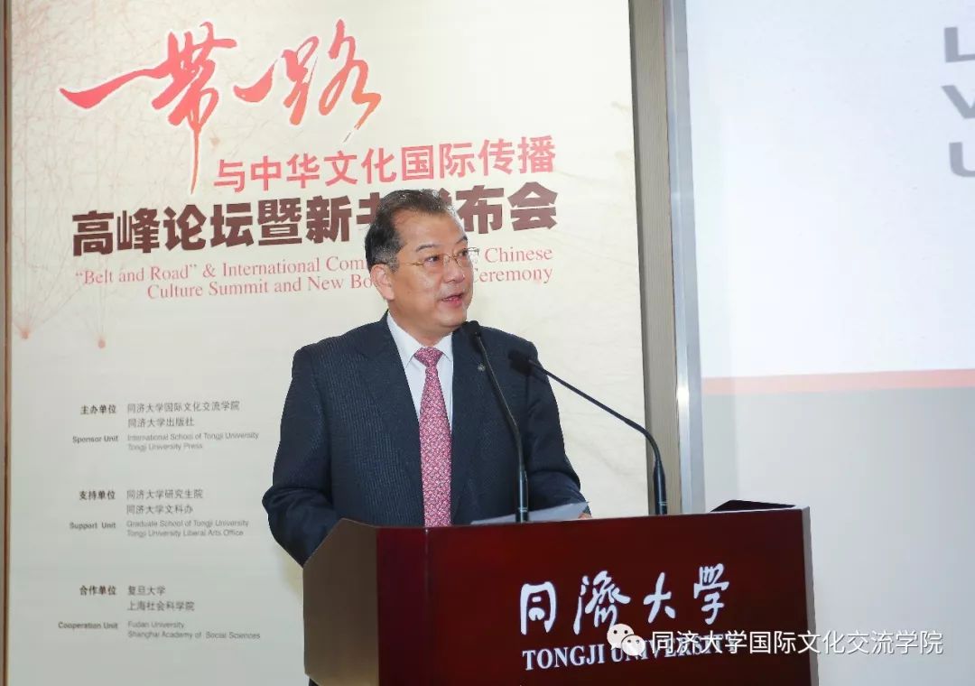 志合者,不以山海为远。中国的发展离不开世界,世界的发展也需要中国。“一带一路”倡议背景下,中华文化如何真正走向沿线国家、走向世界?10月27日,作为庆祝中华人民共和国成立70周年的重要活动,由同济大学国际文化交流学院、同济大学出版社共同主办的“一带一路”与中华文化国际传播高峰论坛暨新书发布会在同济大学举行。同济大学副校长雷星晖、上海人民政府参事蔡建国、上海市委宣传部对外交流合作处副处长周强出席论坛并致辞,来自海内外的60余位专家学者参加研讨。