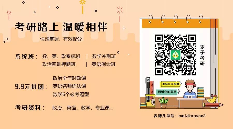 ↑↑戳左上角蓝字关注“麦子考研”点击“···”设为星标★,随时找到麦穗儿