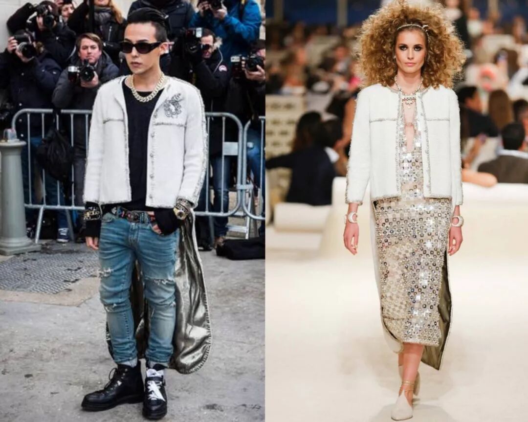 不过,要说出镜率最高的女装单品,当然是权总最爱的女款“小香风”外套了。 名媛专属的粗花呢外套搭配夸张的金属项链和破洞牛仔裤,GD多年前就早已混搭出充满个人魅力的街头风格了!