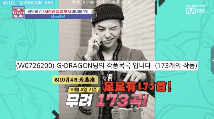 圈内,权志龙是出了名的“版权富翁”。据统计,截止到10月4日,整整173首歌曲版权归权志龙本人所有,2018年基准作词费第一名,单靠版权一年就能赚14亿韩元.并且不止担任组合BIGBANG回归单曲制作,成员们的个人solo专辑,你也能在创作人列表中看到他的名字;为《无限挑战》节目组与IU、严正花等人制作的单曲,也分分钟就登顶榜单。