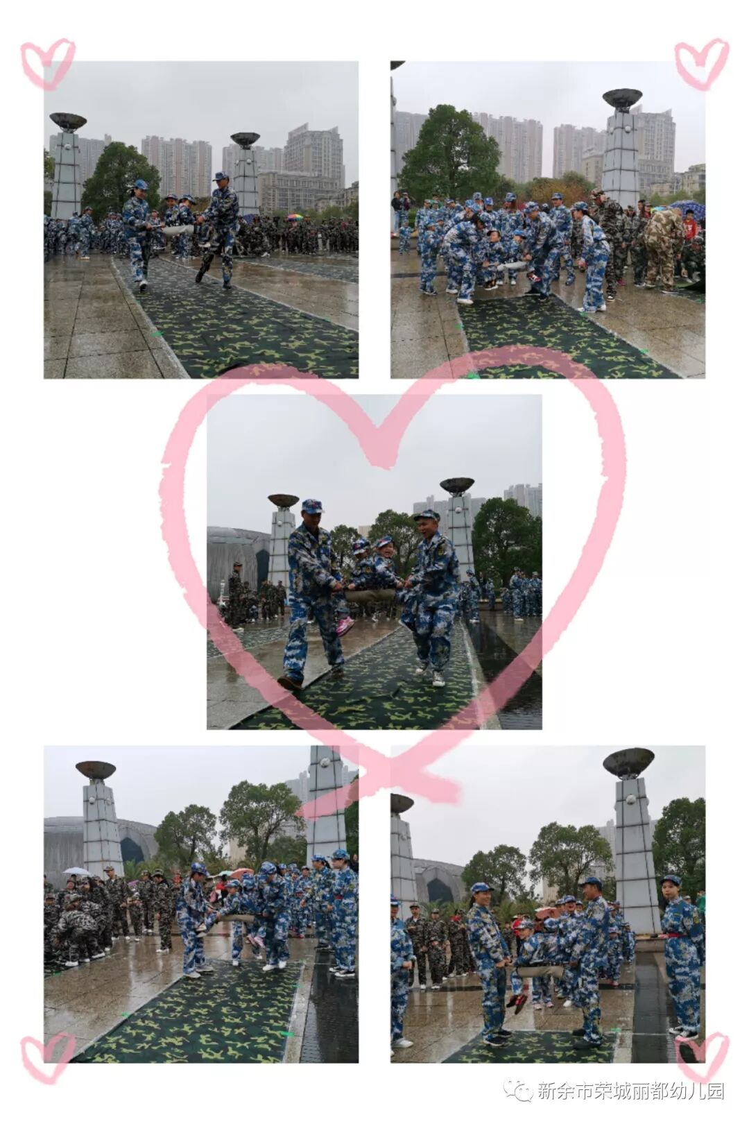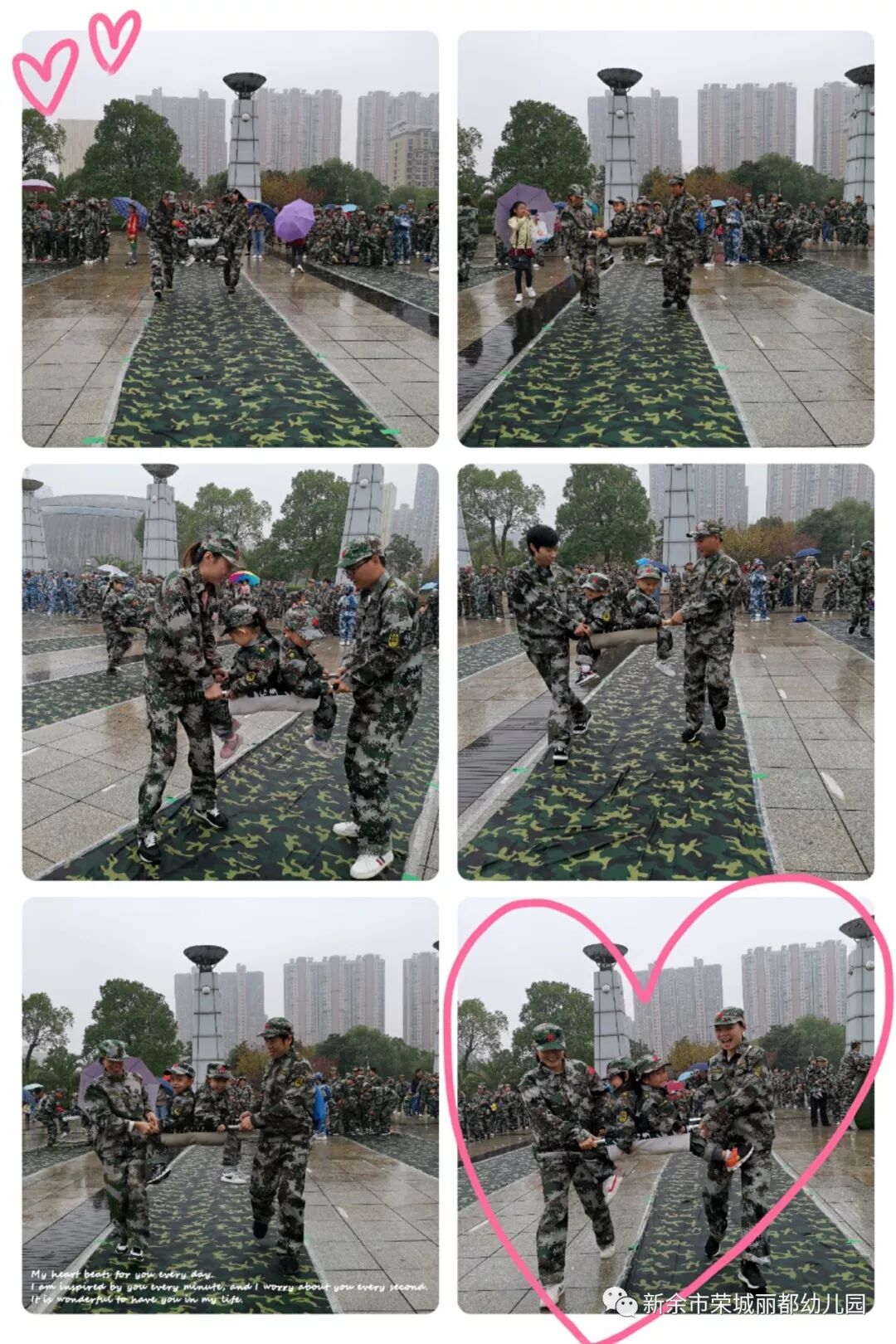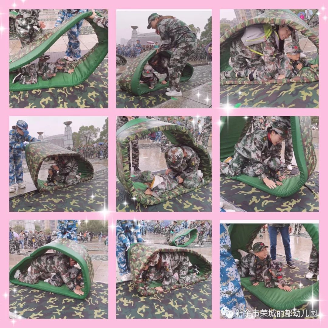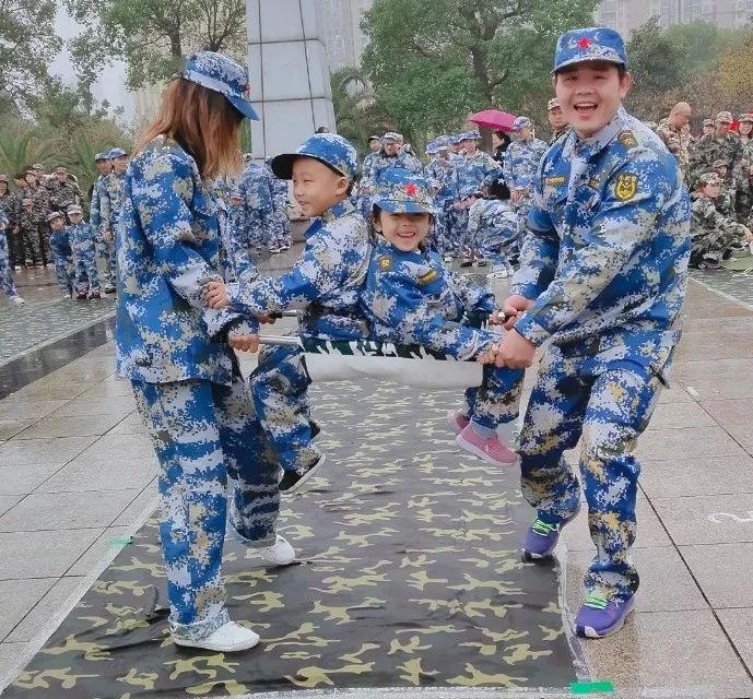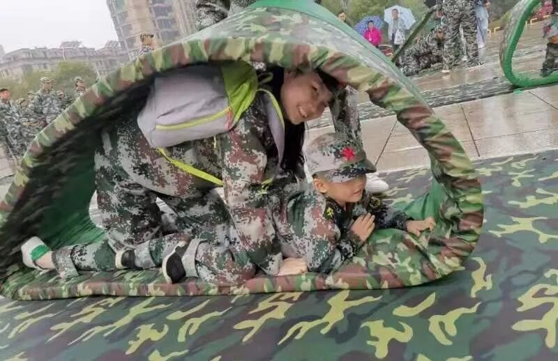 要亲亲,也要抱抱,紧接着的军事游戏活动中,小小兵们在老兵们的陪伴下克服天气困难,不怕雨淋,不怕冷,不怕累,完成主持人安排的一个个游戏。