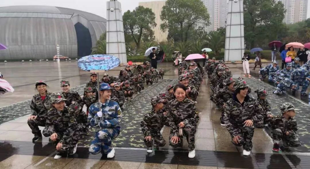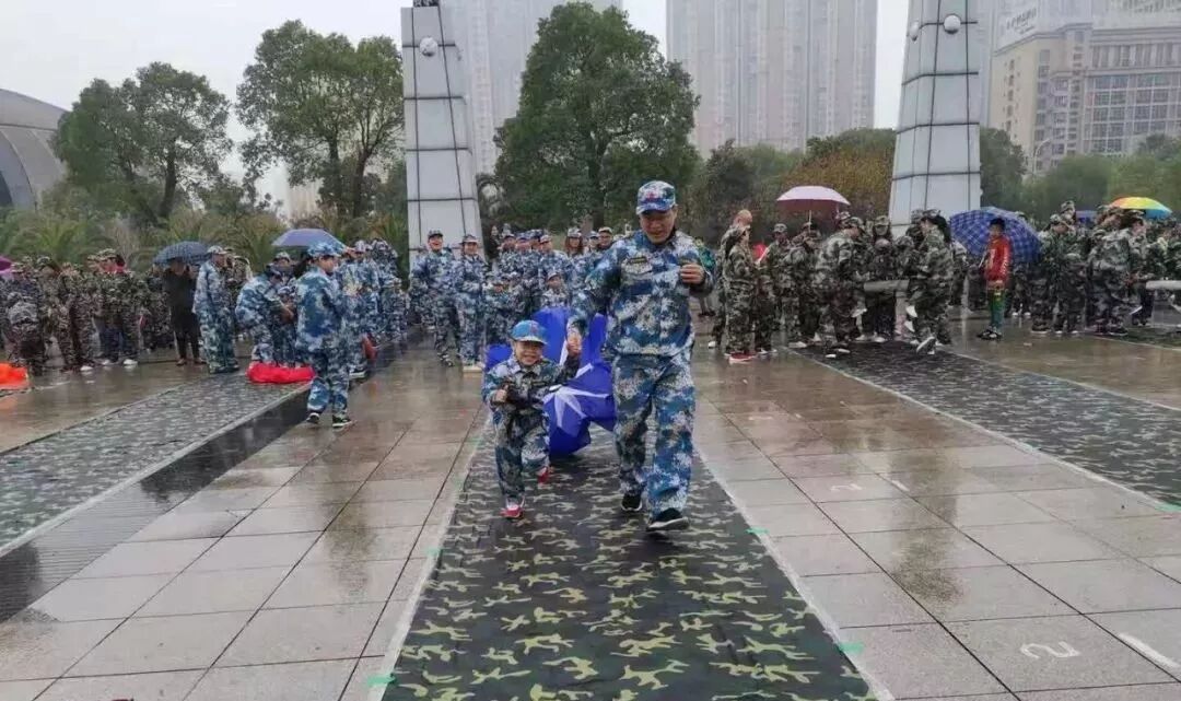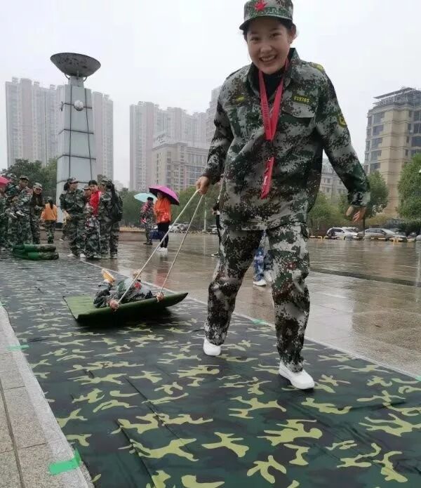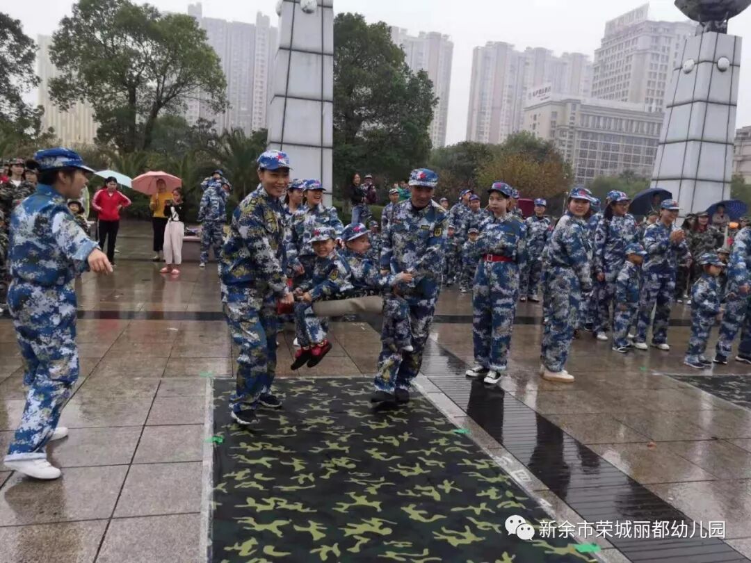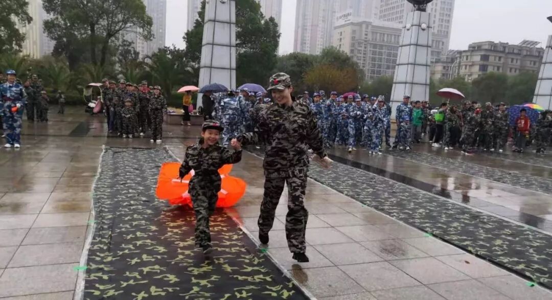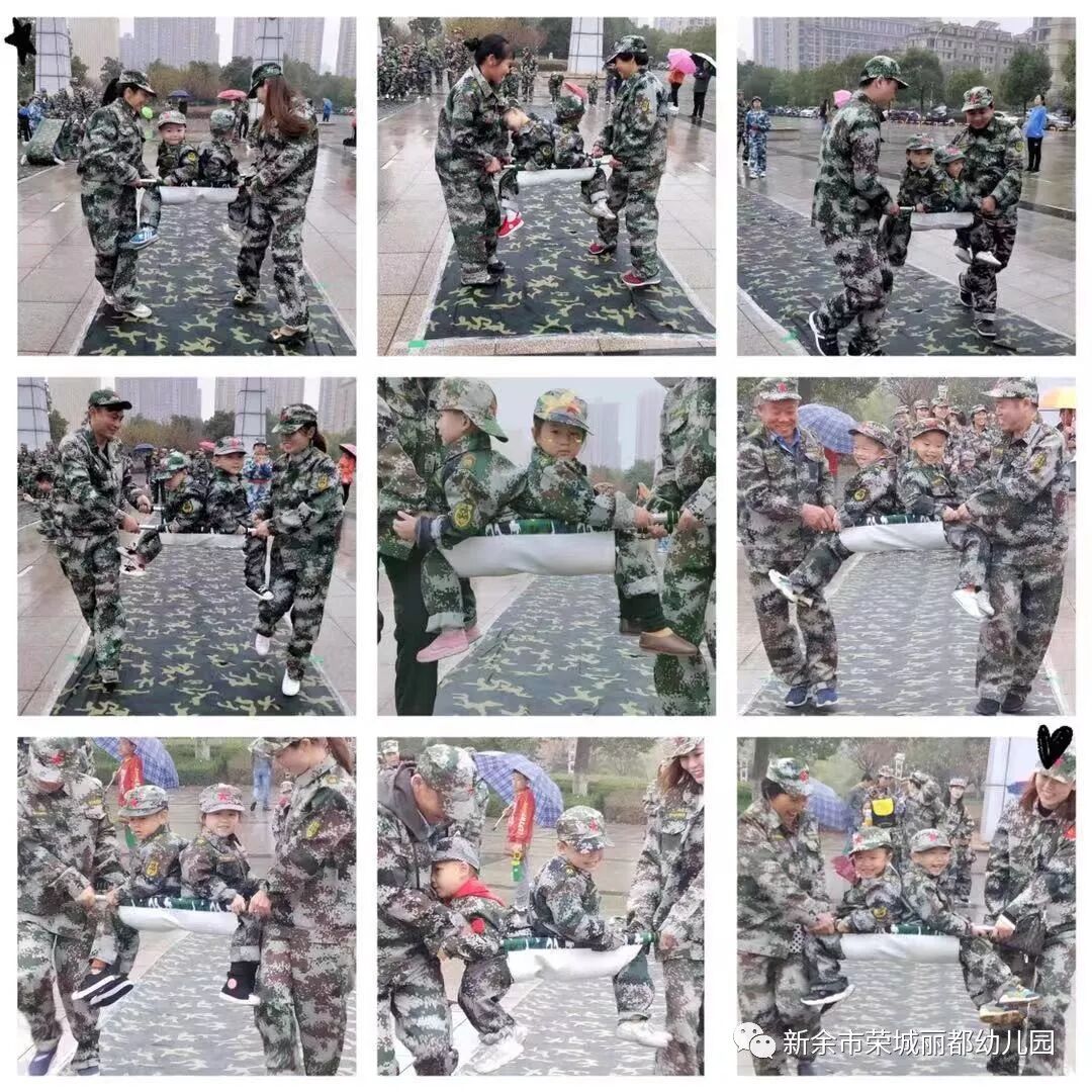 要亲亲,也要抱抱,紧接着的军事游戏活动中,小小兵们在老兵们的陪伴下克服天气困难,不怕雨淋,不怕冷,不怕累,完成主持人安排的一个个游戏。