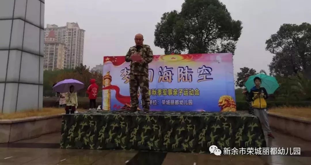 为加强幼儿的国防教育和爱国精神,培养孩子们积极进取、勇敢坚强、永不放弃的的优良品质;大力激发孩子们的爱国情怀;在实践中培养幼儿自信、坚持、不怕困难的意志与品质。荣城丽都幼儿园于10月26日隆重举行“梦幻海陆空”国防教育军事演习亲子运动会活动,虽然天公不作美,但并不影响我们三军的热情,震撼人心的场面,提高国防知识在幼教中传播,开展国防教育,传递正能量,让爱国潮在幼儿心中萌芽!