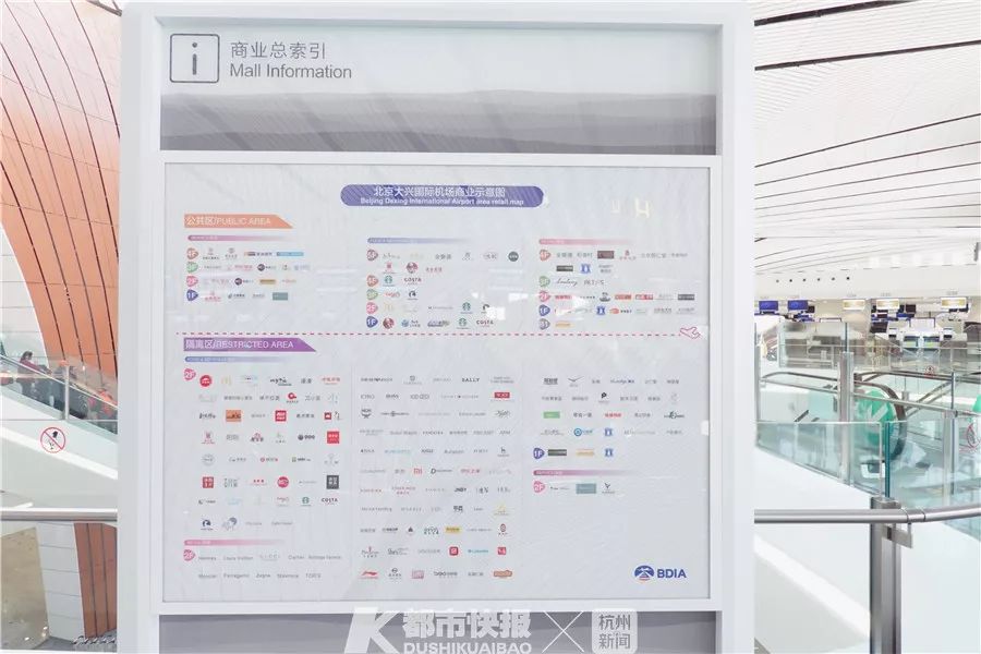 此外,很多市民还会选择转机时在机场血拼一番。记者看了看大兴机场的购物指示牌,发现购物区有Louis Vuitton、Hermes、GUCCI等国际大牌,也有MCM、HAZZYS等轻奢品牌,还有江南布衣、朱炳仁铜等杭州人熟悉的本土品牌,大家购物选择的余地将会很大。