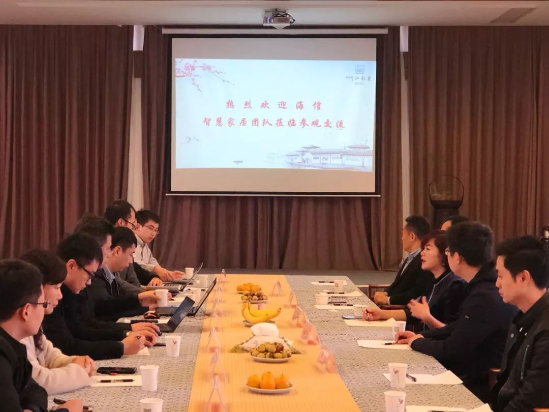 参观结束后,江南里董事长陈英华、汪华栋与海信智慧家居公司常务副总杨迎时一行召开了座谈会,双方就合作内容、技术支撑、数据运营、产业发展等方面展开了深入交流。