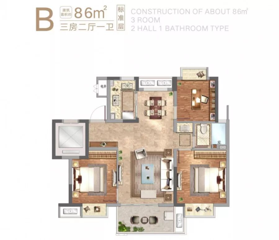 约86㎡精致三房