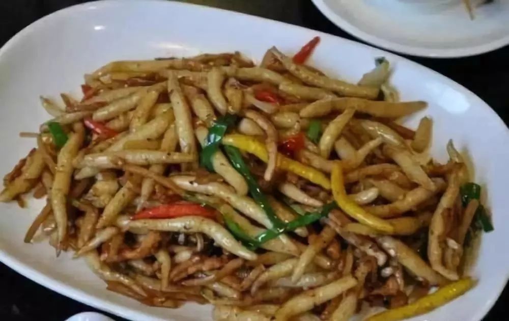 7.粉虫,粉虫是广西南宁传统小吃之一,起源于清代,因其形似虫草而得名,食用柔软,可做做成炒粉虫或粉虫汤。