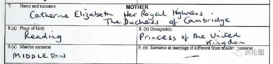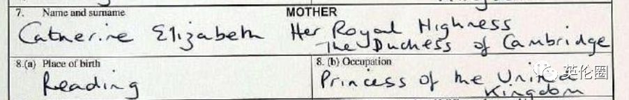 夏洛特、乔治、路易小王子的出生证明上 凯特部分