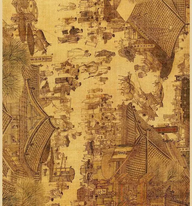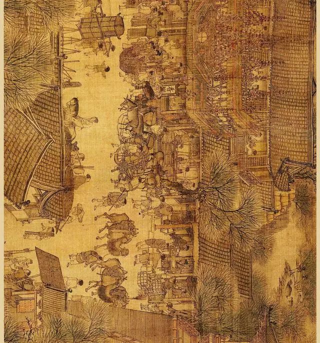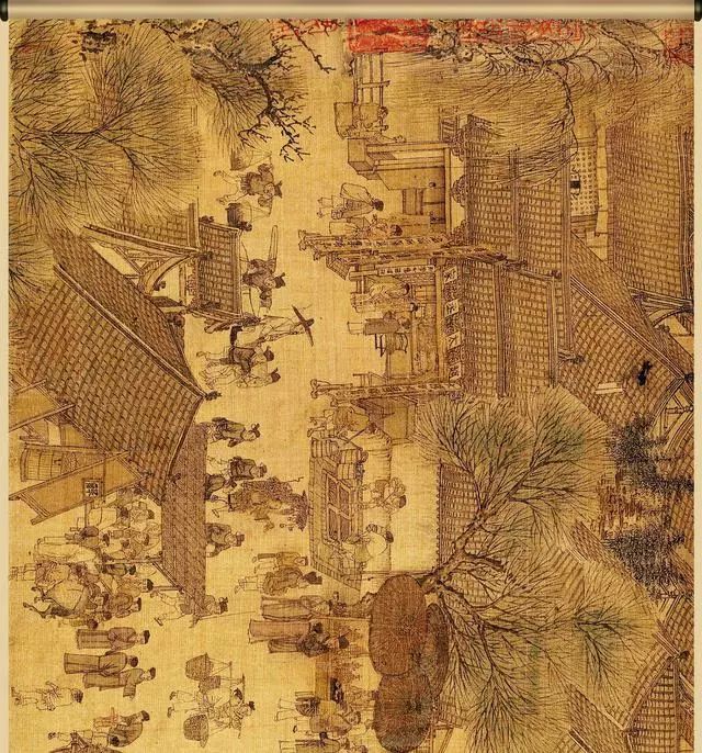 全卷画面内容丰富生动,集中概括地再现了北宋全盛时期都城汴京的生活面貌。构图采用鸟瞰式全景法,真实而又集中概括地描绘了当时汴京东南城角这一典型的区域。