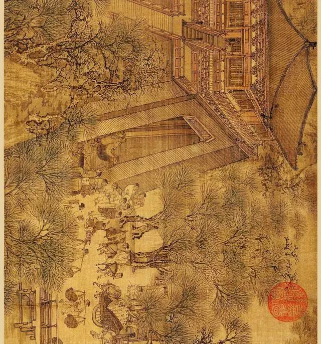 《汉宫春晓图》尺幅很大,作为装饰性绘画来说属于巨制。汉宫春晓是中国人物画的传统题材,主要描绘宫中缤妃生活。