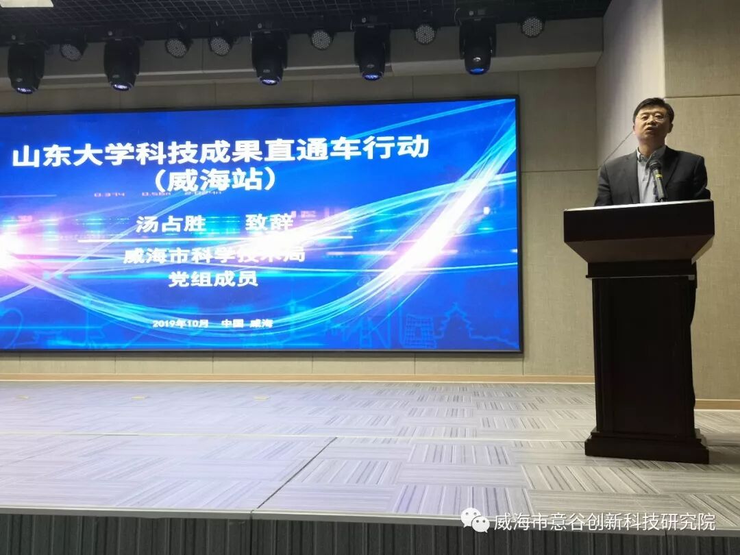 会上,威海市科学技术局党组成员汤占胜介绍了威海市新兴技术转移机构规模及取得的成果转化情况,并表示了与山东大学深化合作的殷切期盼。