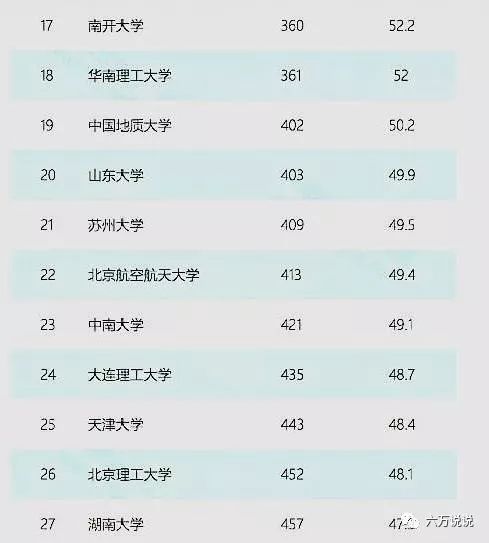 有趣的是国内的排名就比较有意思了,国内知名985高校山东大学跌落神坛,出局前20,取而代之的是周总理的母校南开大学了。