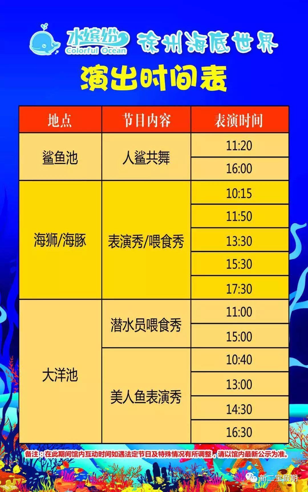 徐州海底世界按照国际一流标准建设,场馆面积8000余平方米,储水量3800多吨,大洋池亚克力厚42厘米,达到全国第三,高度和宽度分别为7.5米和13.5米。容纳数百种海洋生物,超过20000尾的海洋鱼类。 海豚宝宝 企鹅宝宝萌翻全场人鱼表演绚丽夺目 美不胜收 潜水、鲨鱼、海豚、海狮各类表演精彩纷呈探索海底奥秘 畅游海底世界