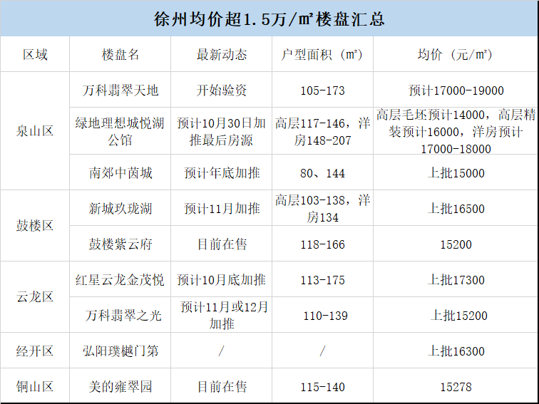目前,在徐州市区有不不少楼盘的均价超过了1.5万/㎡。像近期即将开盘的万科翡翠天地、绿地理想城悦湖公馆,都属于房价逐步升高,但是依旧卖得很好的典型。我们上次也总结过,大部分10000元/㎡以下的楼盘无非面临着两个结果,要么涨价,要么卖完。