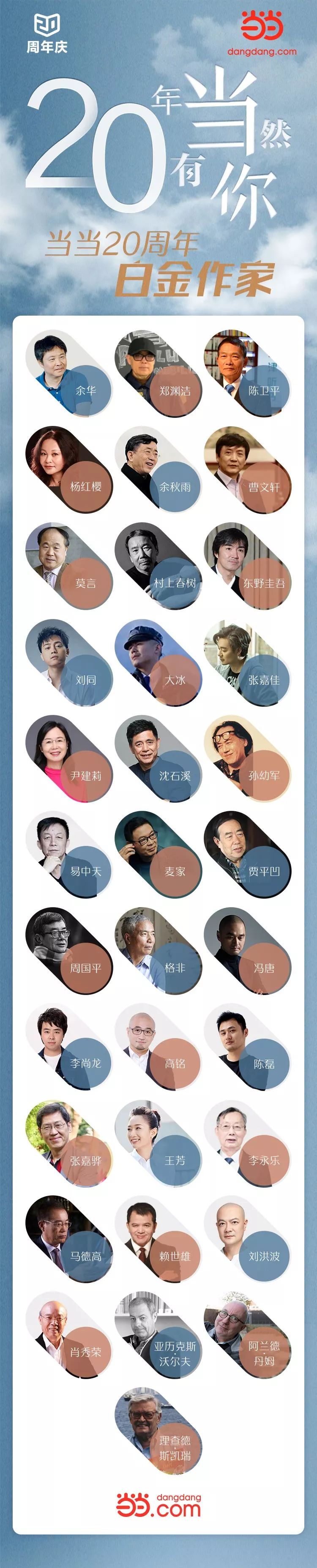 在当当二十周年来临之际,我们根据读者真实的销量选择,重磅推出系列白金作家,向优秀的作品、伟大的创作者致敬!从今天开始至11月8日,我们会陆续介绍34位白金作家。感谢他们多年来笔耕不辍,用文字传递的美好。