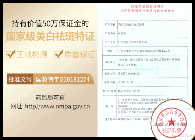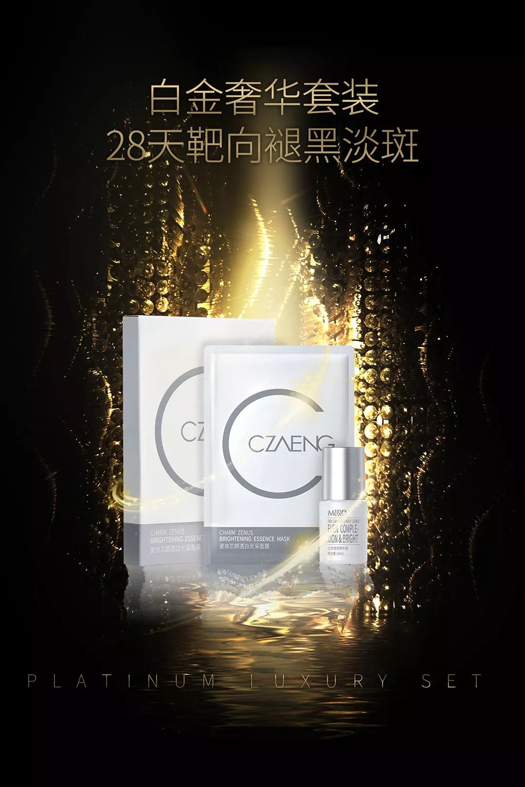 为了加强效果,白金套装特意将拥有国家级别的美白祛斑特证的面膜和精华搭配使用,在保证提亮肤色,淡化色斑功能的同时,又增加了维稳的效果!