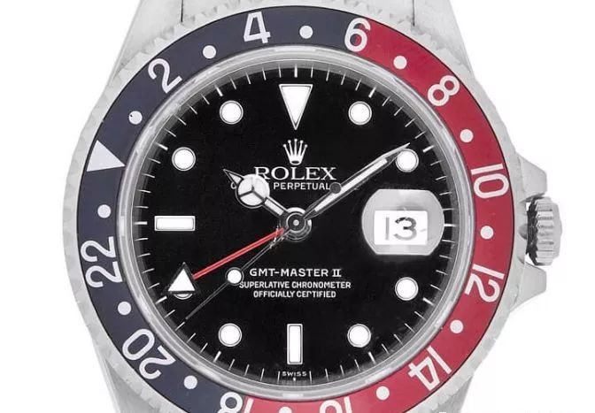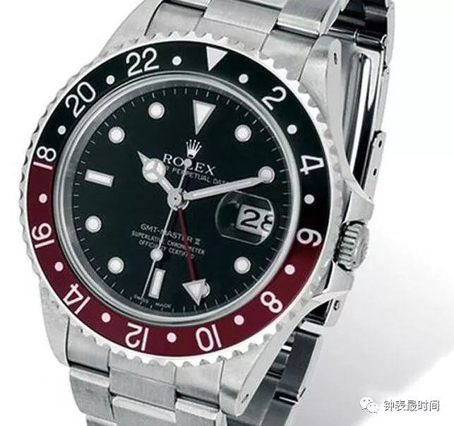 1982年GMT-Master因为升级了新机心、表圈与第二地指针新设计为可双向旋转调整等更名为GMT-Master II,当时推出的款式中便有酒红与黑色的可乐圈。