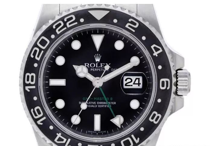 特点:没有表冠护桥,细三角GMT针,树脂表圈