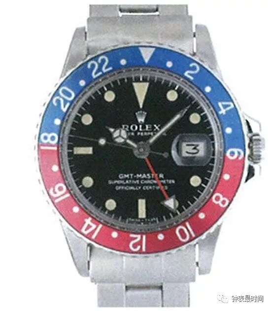 1954年,劳力士受当时全球最大的航空公司美国泛美航空(Pam Am)之请,为国际航线上的机长打造一款能够快速计算时差,并且判断日夜的表款,劳力士的GMT-Master系列因此在1955年诞生,第一代型号Ref. 6542,表圈为红蓝双色,是劳力士第一个使用日期放大表镜的系列,也是第一个双色表圈的系列。